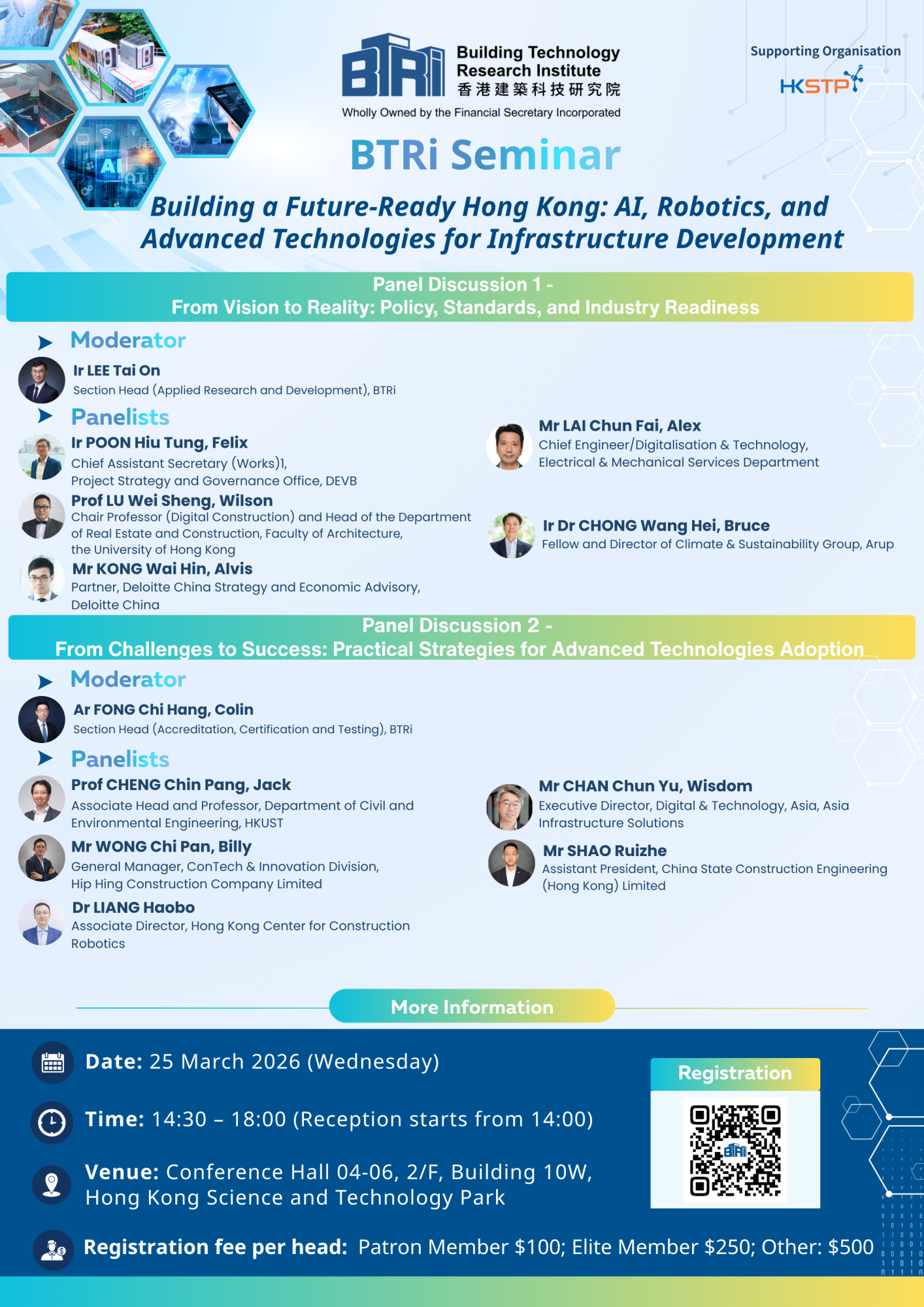 BTRi Seminar “Building a Future-Ready Hong Kong: AI, Robotics, and Advanced Technologies for Infrastructure Development”